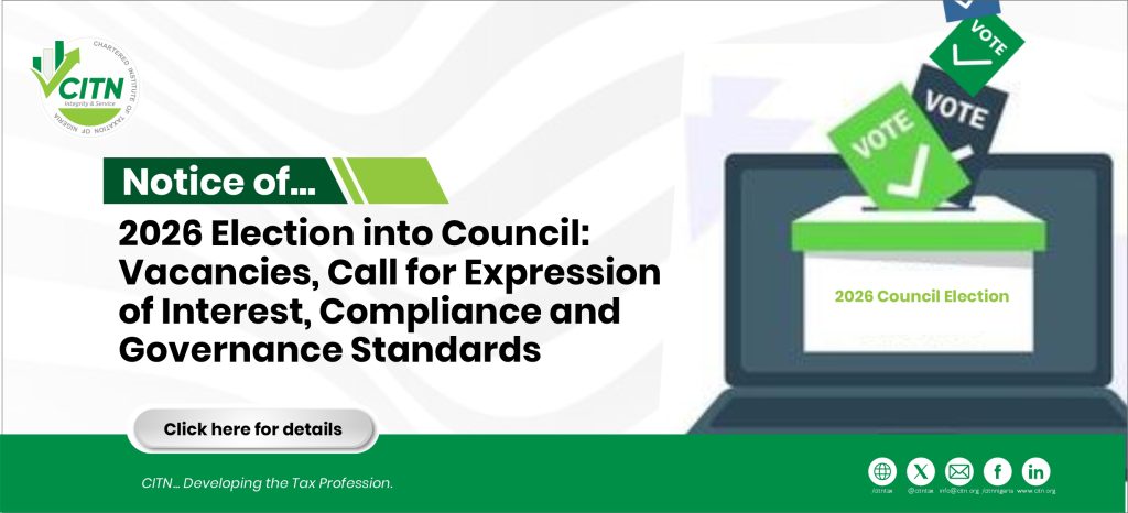 This is to inform all members that pursuant to the provisions of Schedule 1, Paragraph 5 of the Institute’s Act No. 76 of 1992 relating to the conduct of elections into Council, four (4) seats would become vacant. The following members of Council will retire at the 2026 Annual General Meeting scheduled to hold on Wednesday, June 3, 2026, and the four (4) are eligible for re-election in accordance with Section 1, Paragraph 5 of the First Schedule to the CITN Act.